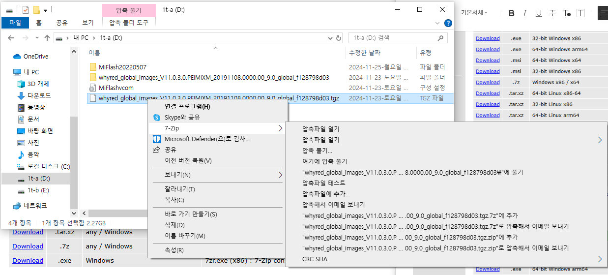 참고로 저는 폰에 ROM을 교체하려고 파일을 받으면 tgz로 압축되어있는 파일이 있습니다.