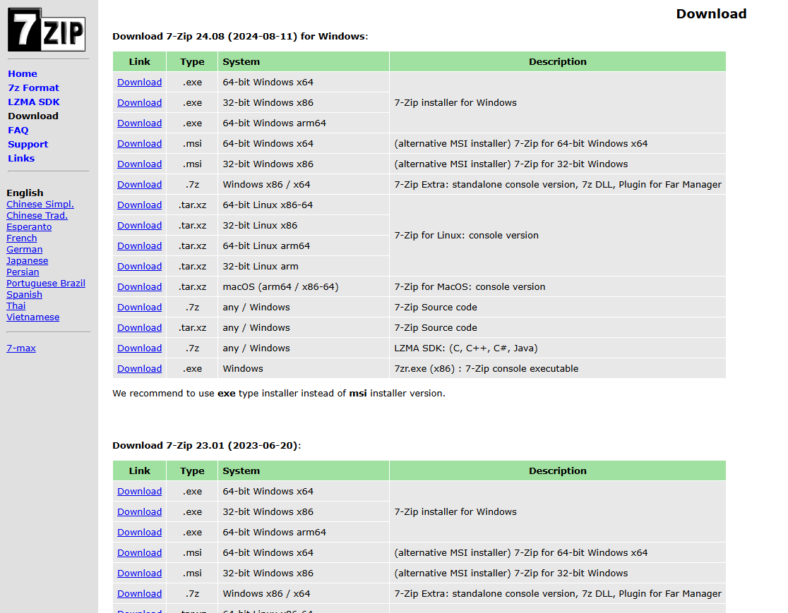 아래 링크는 7zip 공식 홈페이지 입니다.